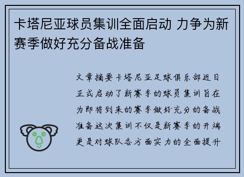 文章摘要:卡塔尼亚足球俱乐部近日正式启动...